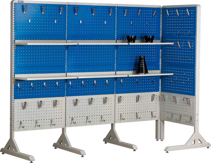 整理架可以自由組合,靠墻擺放或放置在車(chē)間中央,用于存儲(chǔ)各類(lèi)工具、零件,拿取方便,便于目視管理 整理架可選用帶沖孔的上擋板、百葉窗式上擋板或各種置物擱板