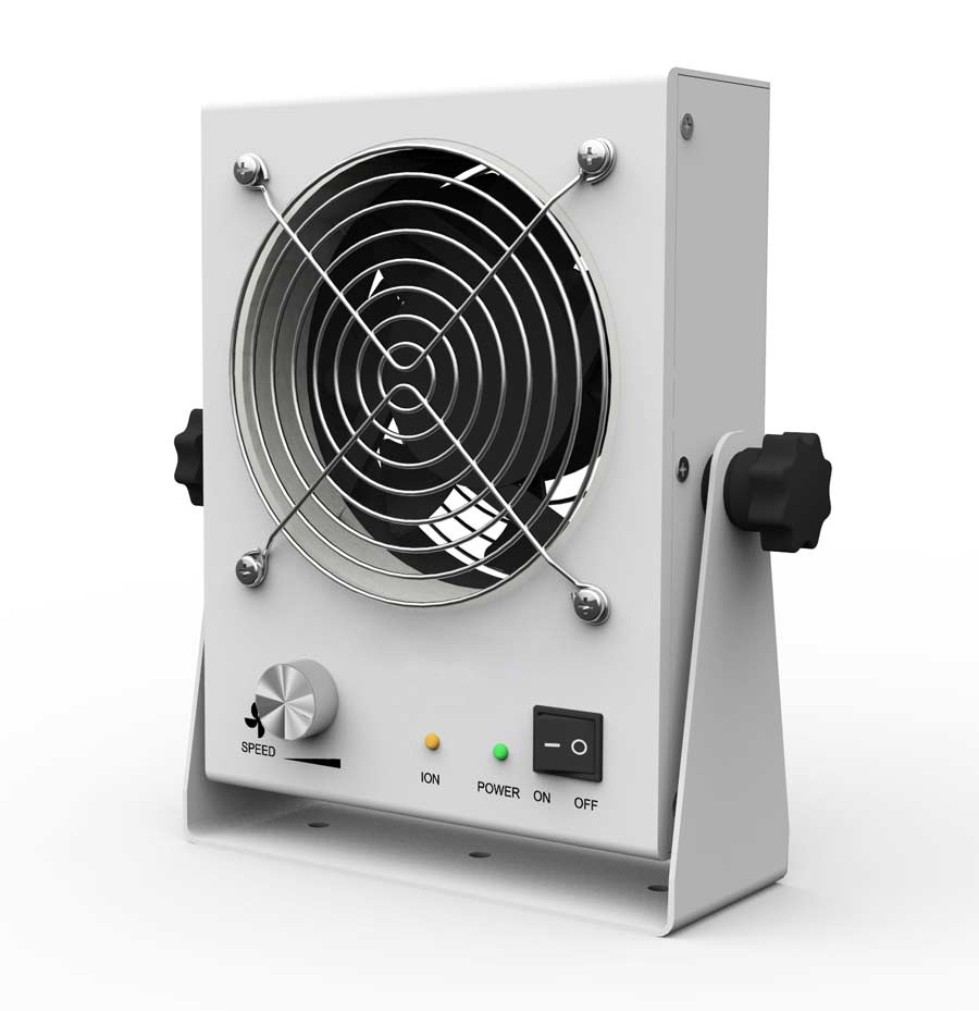 臺(tái)式離子風(fēng)機(jī)采用正、負(fù)同步發(fā)射電極,通過直流高壓產(chǎn)生電暈放電,將空氣分子電離,產(chǎn)生大量正、負(fù)極性的空氣離子,并由風(fēng)扇將其吹向被消物體表面進(jìn)行靜電消除。可廣泛應(yīng)用于電子、光電等行業(yè)。